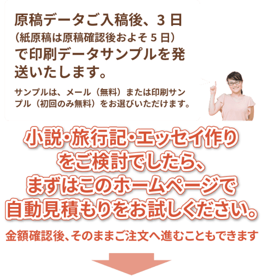 具体的な納期は製本方法によりますので、詳しくは冊子印刷納期表をご覧ください。