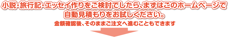 日々書きためられたさまざまな小説・旅行記・エッセイが1冊から印刷製本できます。