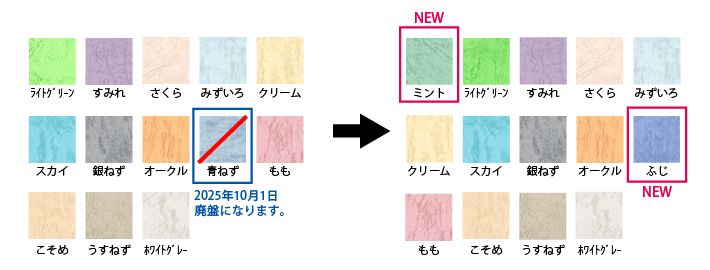 なお、代替として新たに【ミント】および【ふじ】の2色を、